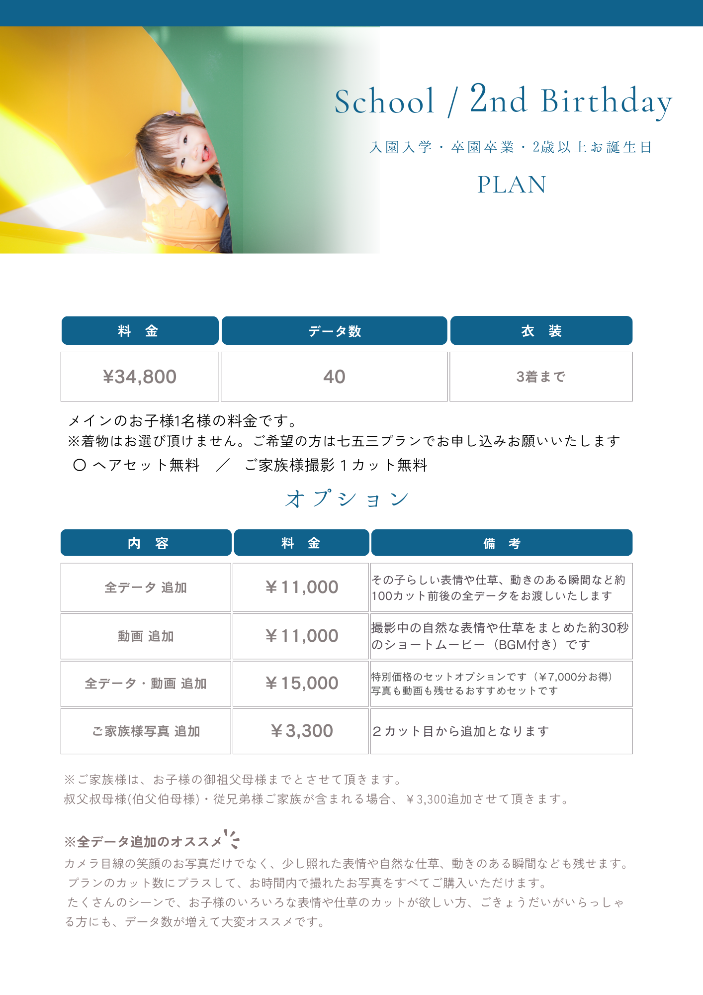 『データのお渡し方法について』 1.オンラインアルバム(メールまたはLINEでお知らせ)2.DⅤD(ご自宅に配送)でお渡しいたします。※納品は撮影日から約20日後です。 下記4つのいずれかの方法でお申し込みください。 ご予約時に ①ご希望の日時 例)2025.9.30(火) 9時 ②プラン 例)七五三 をお知らせください。空き状況を確認の上、折り返しご連絡いたします。 ※午前の枠は、9:00~、午後の枠は13:00~となります。 フォトブック等商品はこちら